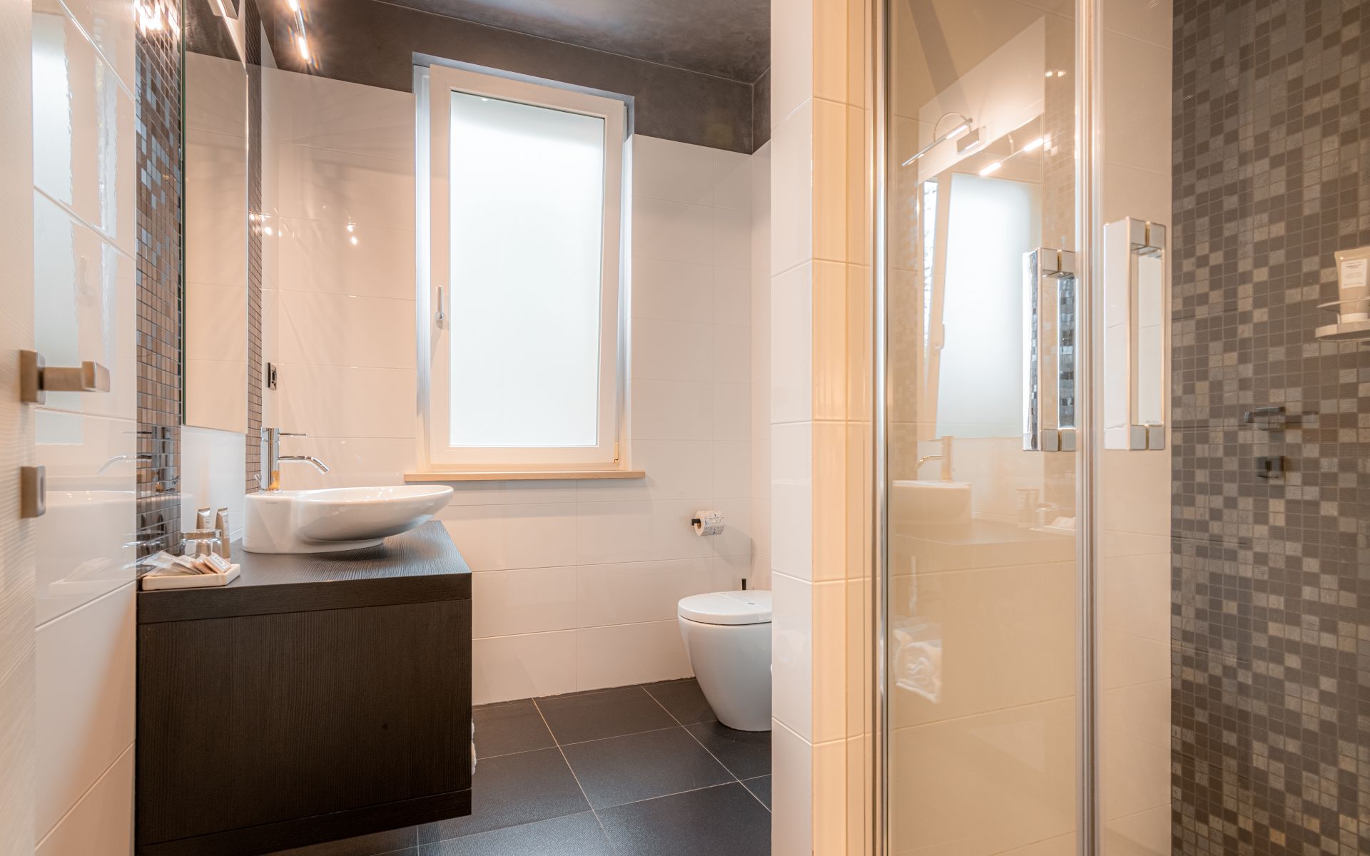 Completano l’ambiente due bagni privati, entrambi moderni, funzionali e completi di doccia, bidet, WC, asciugacapelli e set di cortesia. Un plus raro che garantisce libertà e comodità, anche nei soggiorni più lunghi.